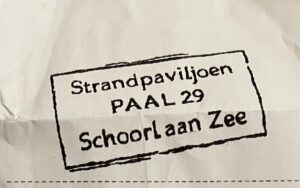 Op mijn recreatieve dag fiets ik verder en passer ik eerst De Kerf – klik hier om de luchtfoto van deze door de duinen gegraven geul te zien. De Mariavlakte volgt, langs het fietspad kleine eikenbossen, vervolgens de Schoorlse Zeeweg met als einddoel ‘Strandslag Schoorl aan Zee’. Een prachtig schoon strand, heerlijk rustig want alleen te voet of per fiets te bereiken. Én Paal 29, een gastvrije strandtent, klassiek want in het storm-seizoen gesloten, alleen de palen van de fundering blijven dan staan.