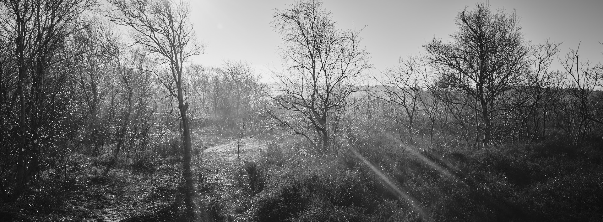 Het is nog donker als ik tussen stad en dorp richting duinen fiets, de gevoelstemperatuur zwaar onder nul door de wind die over de weilanden waait. Tegenwind natuurlijk, maar eenmaal in de bossen van de duinen deert die me minder, het wordt langzaam lichter, de zon is aan het opkomen, flarden nevel in de verte waar het bos ophoudt.