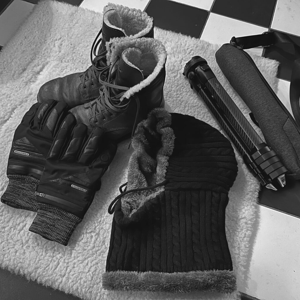 Ook het duinzand is bevroren, de anders zo rulle paden zijn nu makkelijker begaanbaar, warme voeten in de bont-gevoerde schoenen die ik gisteren weer van zolder gehaald heb. Ook de bivakmuts en (Noorse) foto-handschoenen komen van pas, ik besteed een groot deel van de ochtend aan het fotograferen rond het meer en in het aanpalende Kleine Ganzenveld.
